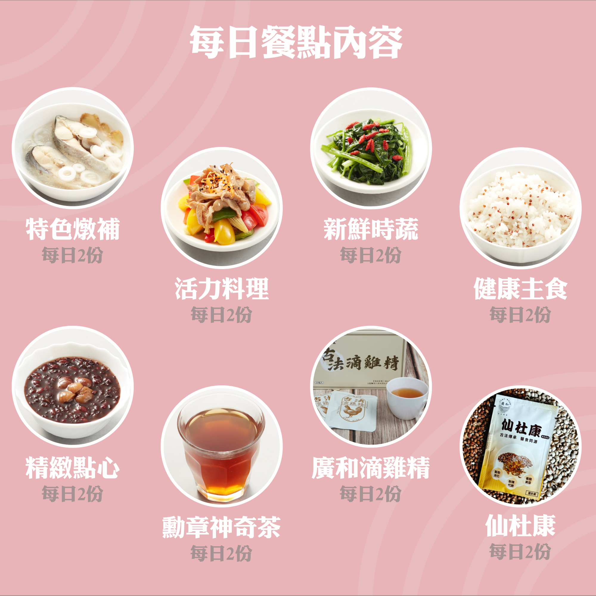 ・特色燉補搭配活力料理、新鮮食蔬、各式飯類、甜點
