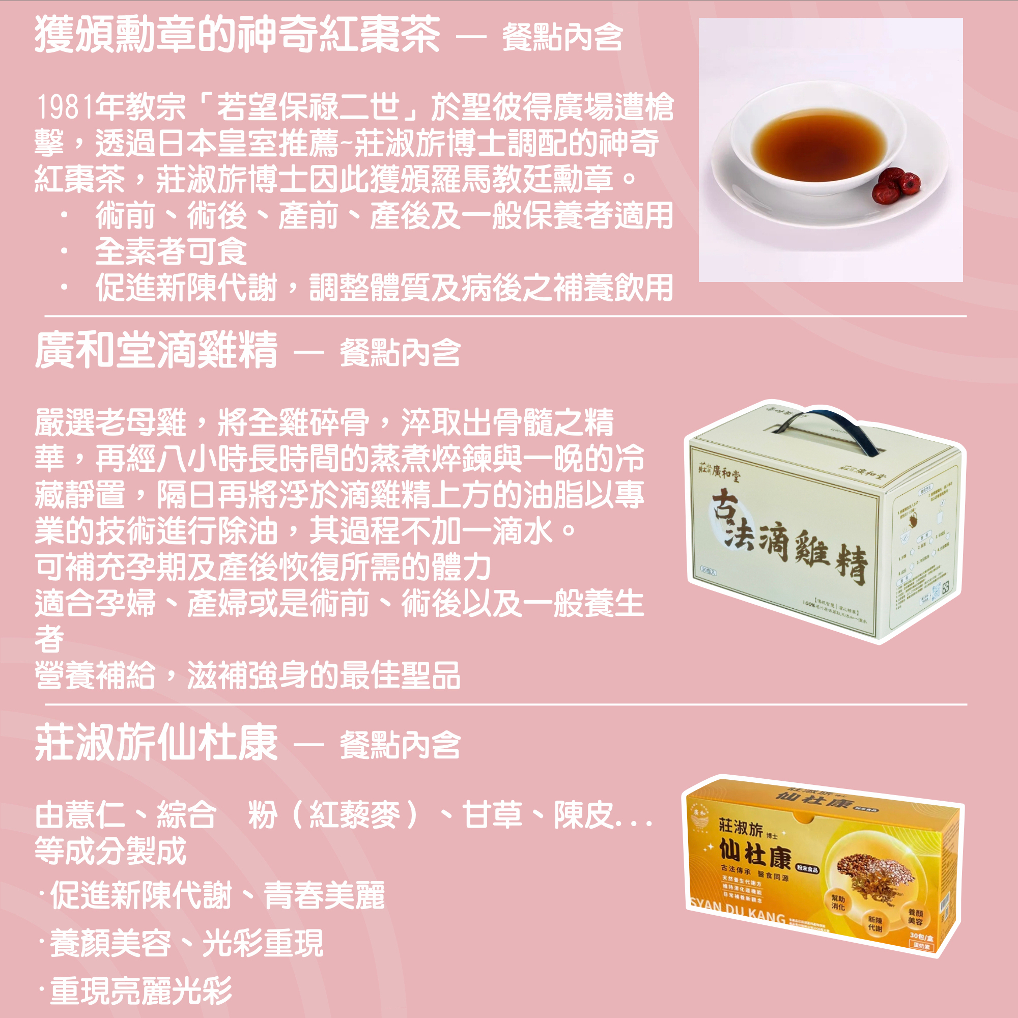 ・超值配套——廣和堂滴雞精、榮獲勳章神奇紅棗茶、莊淑旂仙杜康