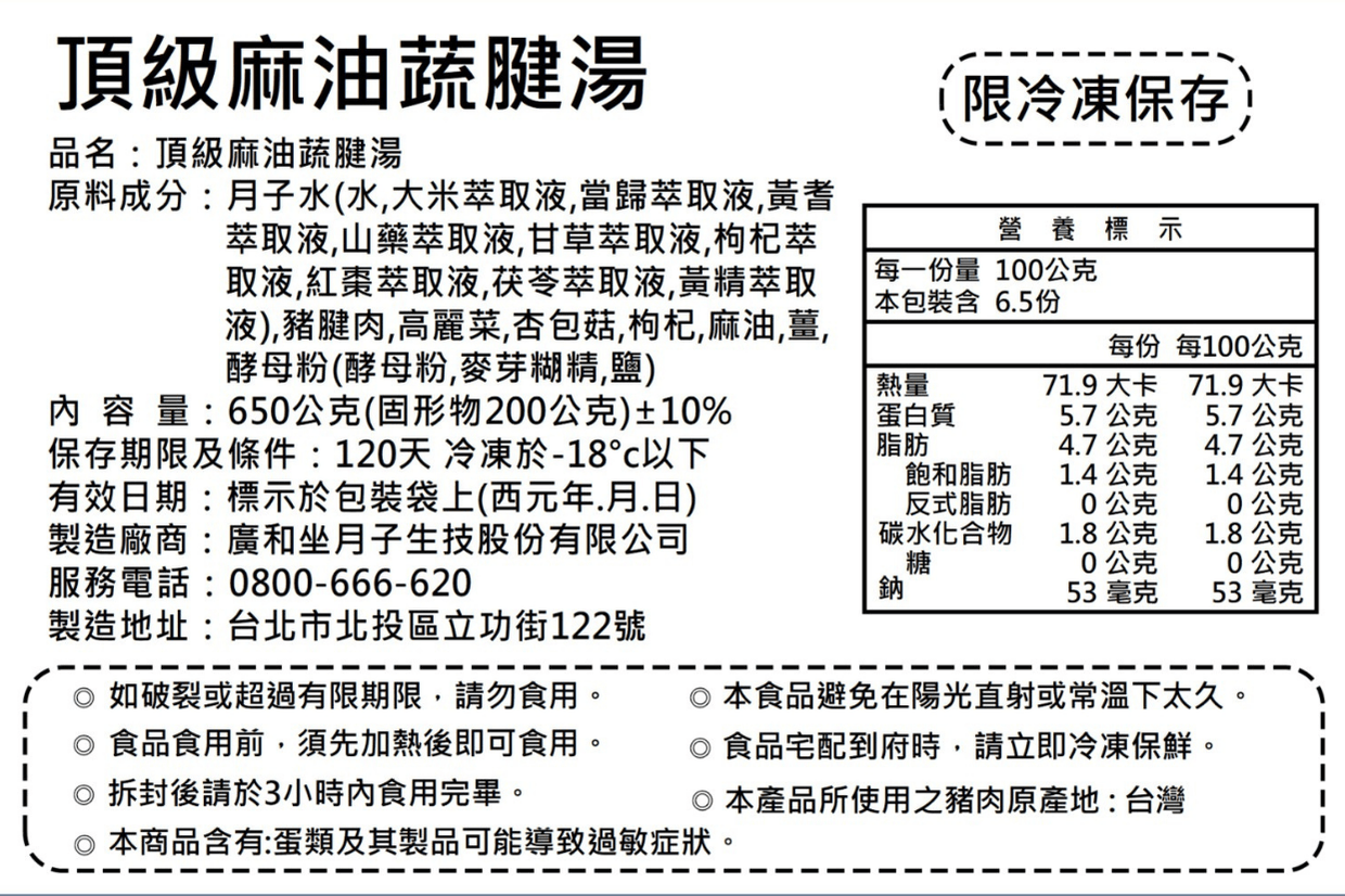 • 產品內容:頂級經典麻油雞2包+頂級麻油蔬腱湯2包+頂級滋補藥膳雞2包+頂級聖氣藥燉排2包+頂級玉米排骨湯2包+榮獲勳章神奇紅棗茶4包