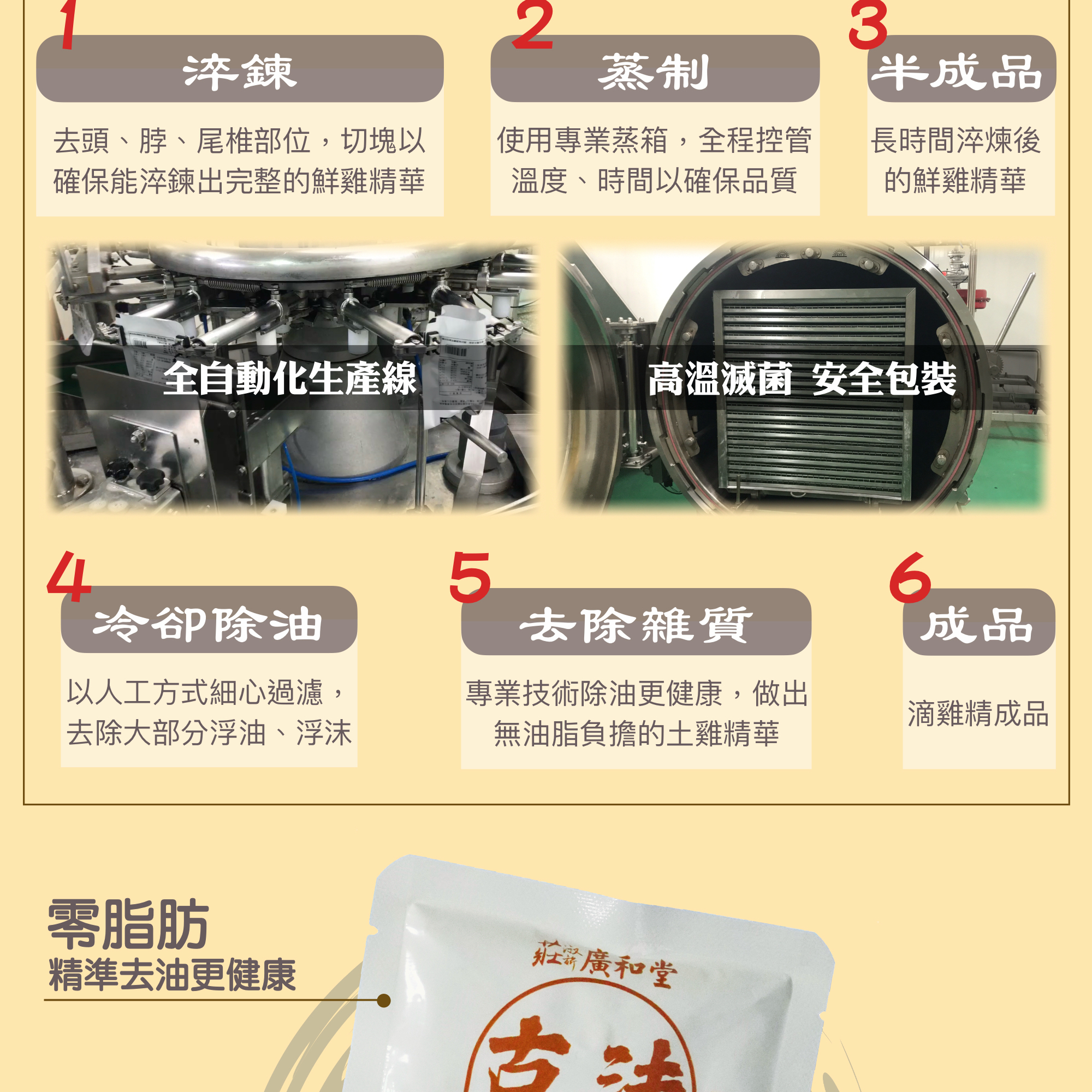 8小時蒸煮,一夜冷藏,精確去油,100%純老母雞精華,濃醇營養,帶來活力與健康。